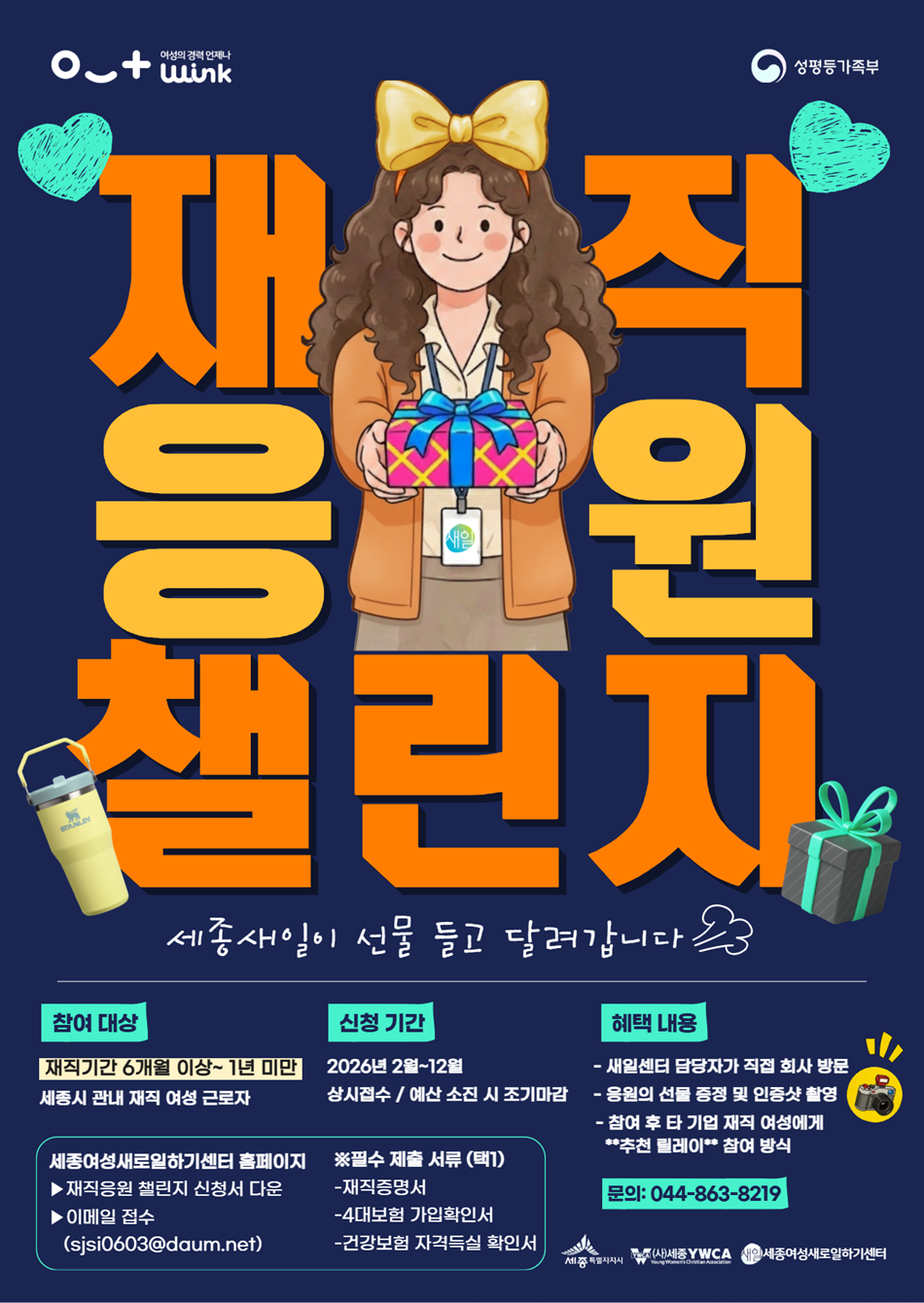 - ¢Á ´ë»ó : ¼¼Á¾½Ã °ü³» ½ÅÀÔ ¿©¼º ±Ù·ÎÀÚ (ÀçÁ÷ ±â°£ 6°³¿ù~1³â ¹Ì¸¸)